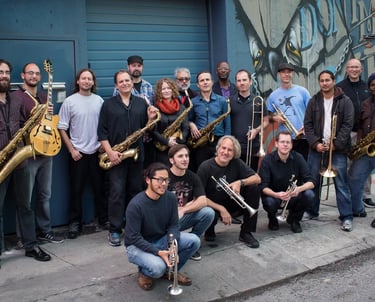 Johnston was fortunate enough to write and play for trumpeter Erik Jekabson’s Electric Squeezebox Orchestra way back when it had the less poetic but highly accurate name of “The Bay Area Jazz Composer’s Big Band.” The ESO became the ESO in 2014, beginning a historic three-year residency at Doc’s Lab in San Francisco’s North Beach neighborhood. For three years, new pieces were played for eager audiences every Sunday night.